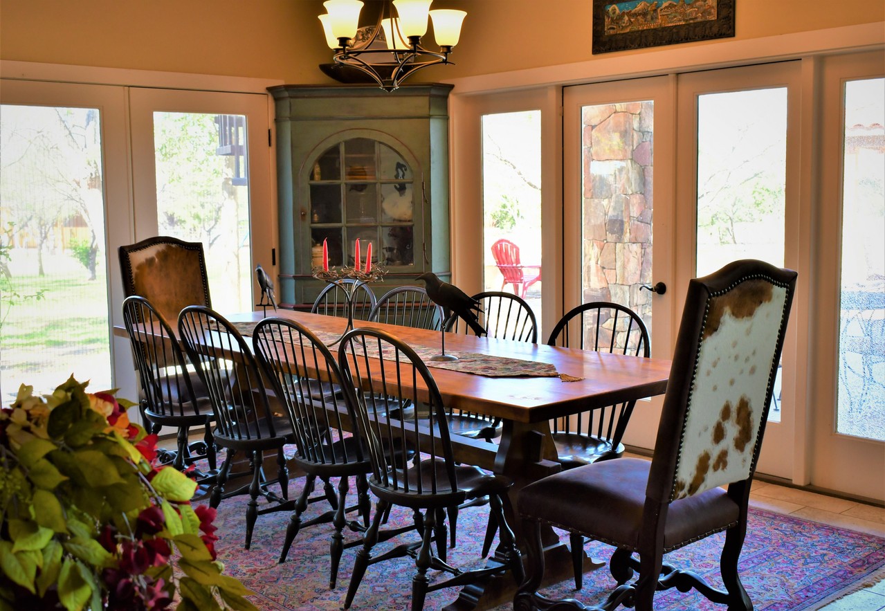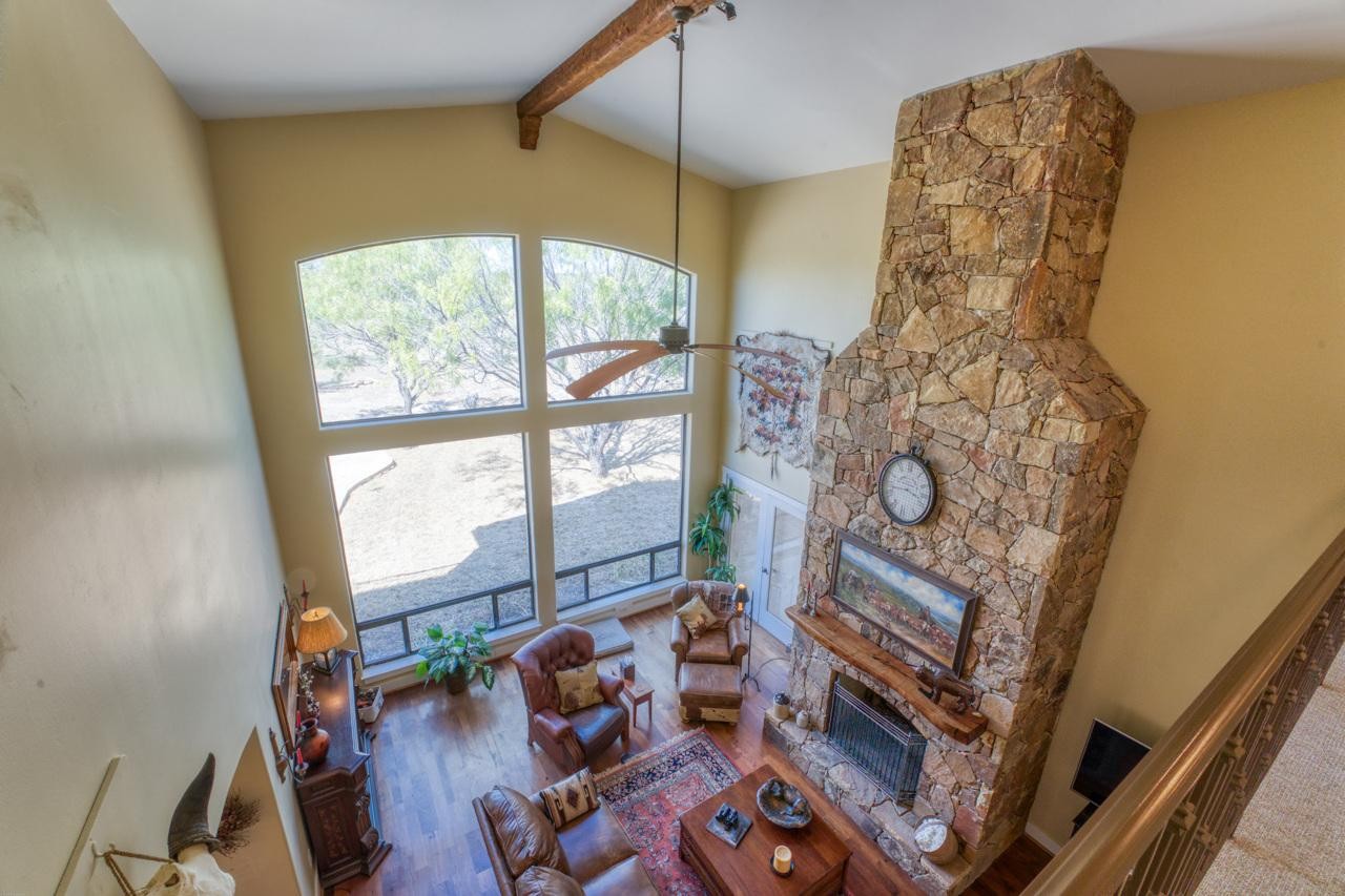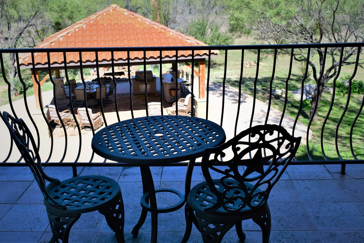 Welcome to country living at its finest! Bella Vista Estate is in a private gated community with all the safety and serenity offered by country living and only minutes from restaurants, coffee shops, grocery, and medical facilities. The 4 bedroom, 4.5 bath home is set on 10 fully fenced acres with expansive Texas Hill Country Views. The property also includes a detached 3 car garage, workshop, and horse barn. The beautiful open living area is perfect for entertaining family and friends or just relaxing with a good book. Floor to ceiling windows, massive stone fireplace, mesquite wood and tile flooring provide a soothing atmosphere. Enjoy your favorite beverage from any of the upstairs balconies or from your large flagstone patio complete with stone fire pit and covered pavilion. Wildlife Exemption provides lower property tax.
