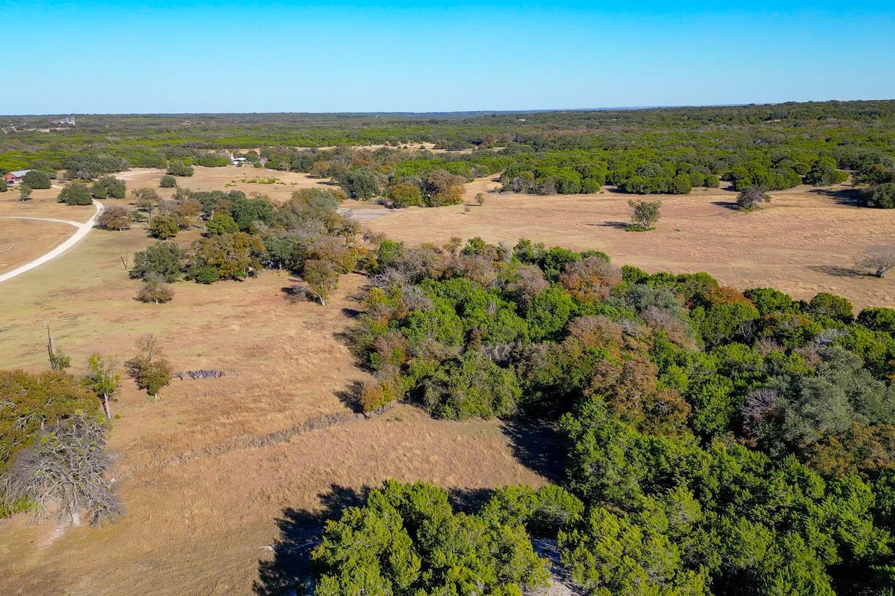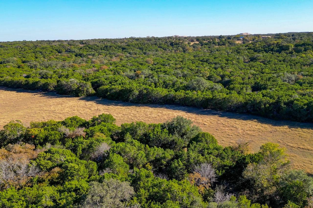 The land features an excellent blend of dense woods and productive bottomland fields. Tree cover includes oak, elm, pecan, and cedar, with selective cedar clearing already completed to reveal beautiful live oak parks. Rolling topography ranges from 810 to 930 feet in elevation, with the higher points showcasing expansive Hill Country views. Stillman Valley Creek meanders through the ranch and offers potential sites for ponds or a lake.