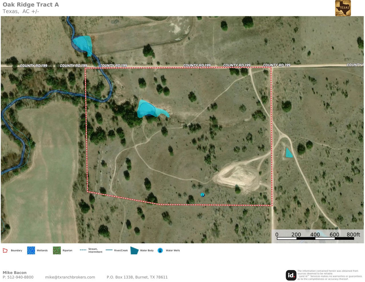 This property is a 63.7-acre tract in NW Mills County in the Central Texas/Northern Hill Country of Texas. It is located in 825-acre Oak Ridge Ranches which was divided into large acreage tracts like similar to this one. It has frontage on Mills County Road 199. Access is currently Private Road 199 which runs on the east side of the tract. Also, another older entrance on County Road 199. There is electricity on the property along with a well that the driller’s report indicates 25 gallons a minute. There is an equipment shed which currently houses tractor and shredder, along with a smaller ATV. The pond has water piped from the well with hydrant and larger valve which runs into the pond. The land itself is rolling with panoramic views in all directions from the high point by the well, which by the way there is a flat building site close to the well. This nice ranchette is well-located within driving distance to metro areas of Texas including Waco 97 miles, Abilene 101, Austin 121, and Dallas-Ft. Worth 153. Wildlife exemption currently in place. Please attempt to allow 24 hours advance notice.
